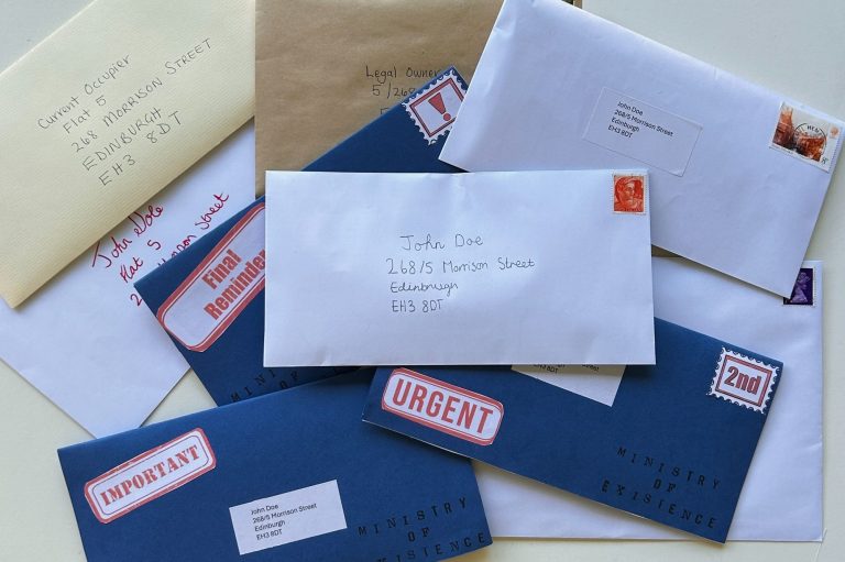 Prop letters made for 'Ministry of Existnace' short film. Designed stamps and stickets.